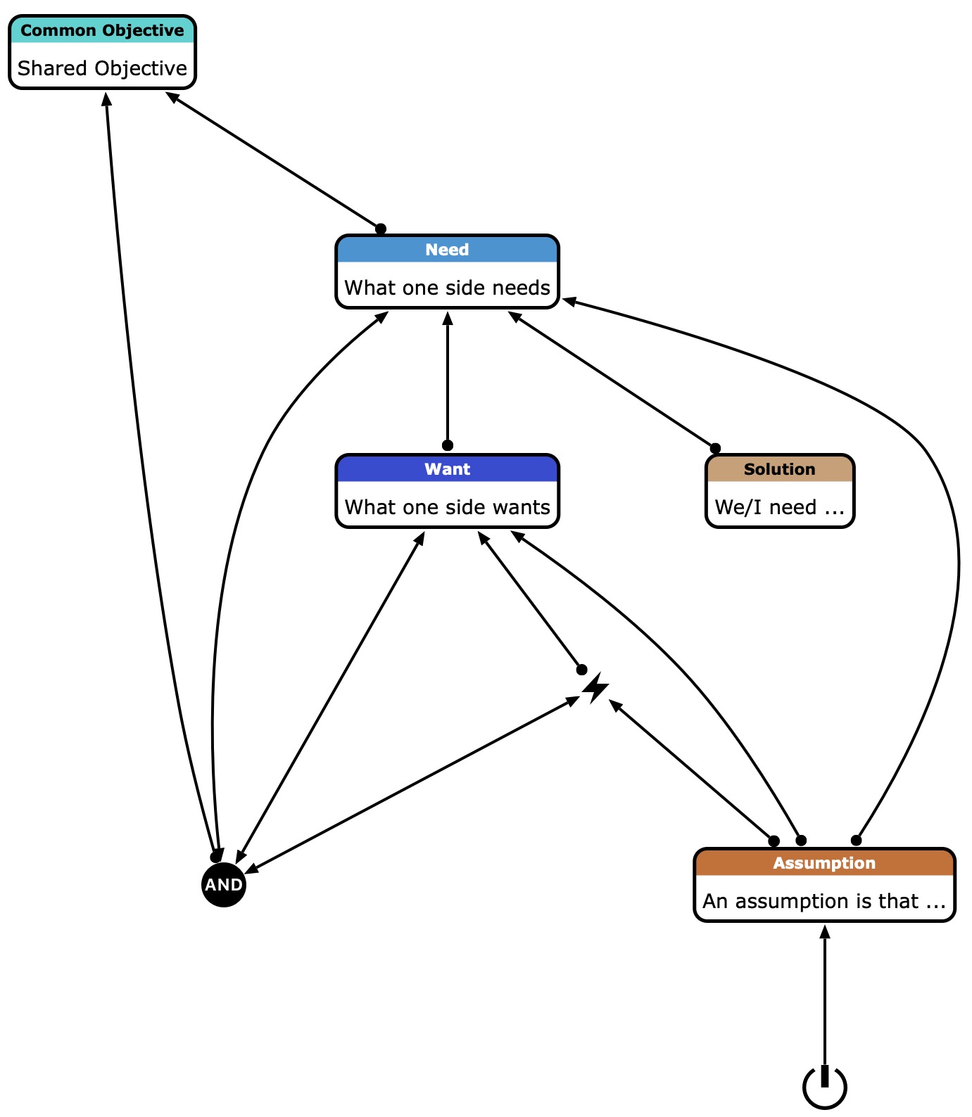 | Conflict | The perceived Conflict, expressed as mutually exclusive wants | No / Want, And |
